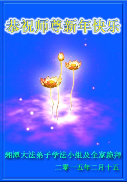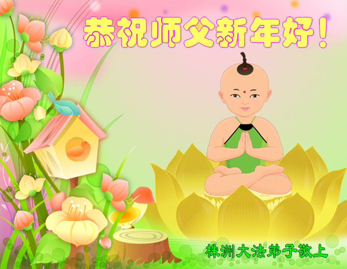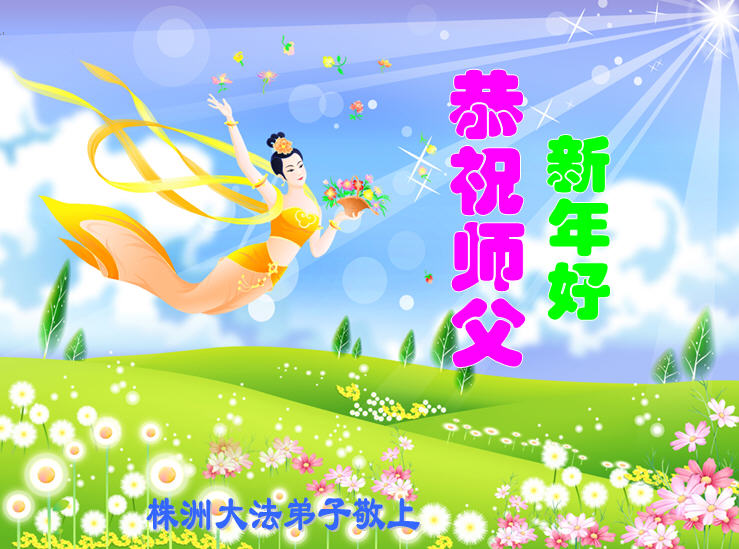 尊敬的師父過年好! 沐浴著浩蕩的佛恩,在修煉的路上我們又走過了一年。在新的一年裏,弟子將繼續努力,認真做好三件事,信師信法,正念正行,堅定不移,助師正法,精進不停,完成我們史前誓約,圓滿大法弟子的責任,走向神。