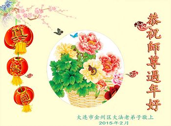 在二零一五年新年除夕即將來臨之際,我們學法小組的全體大法弟子給師尊拜年:恭祝恭祝慈悲偉大的師尊過年好!