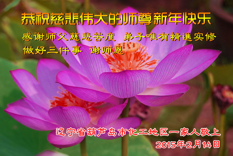 謝謝師父!葫蘆島地區全體大法弟子問候師尊:「過年好!」