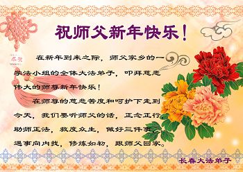 我修煉法輪大法十九年整,全家身心受益,在新年到來之際,我代表父母,妻子,姐夫全家,姨父母恭祝師尊及家人新年快樂!在新的一年裏,弟子一定精進,完成使命,多救人,請師尊放心!
