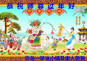青島大法弟子代表全家跪拜慈悲偉大的師父,向您說聲:師父過年好!