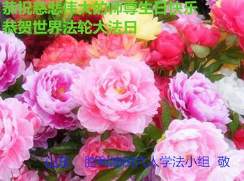 山東勝利油田六人學法小組大法弟子恭祝慈悲偉大的師尊生日快樂!恭賀世界法輪大法日!