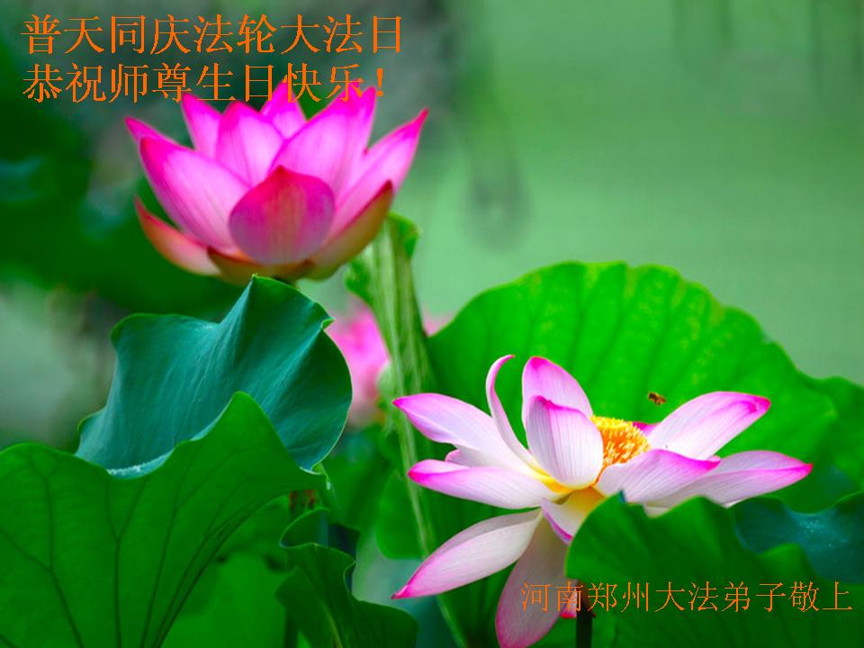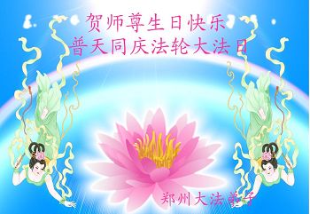 河南省鄭州大法弟子恭祝慈悲偉大的師尊生日快樂!慶賀世界法輪大法日!