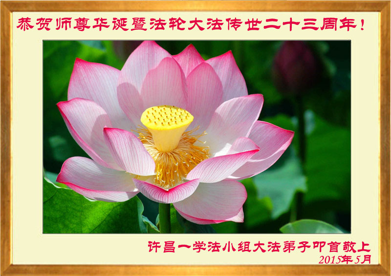 河南許昌一大法弟子全家恭祝師尊生日快樂!恭賀世界法輪大法日暨大法洪傳二十三週年!