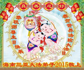 身居海南的大法弟子恭祝慈悲偉大的李洪志師父六十四歲華誕!