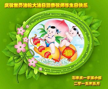 河北省石家莊十人學法小組大法弟子慶祝五一三世界法輪大法日暨恭祝師父生日快樂!