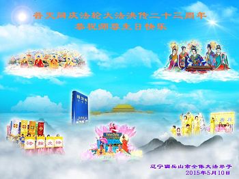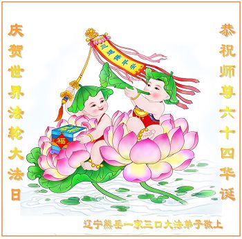 慈悲、偉大的師尊:您好!在這普天同慶、同祝、同賀第十六屆「世界法輪大法日」暨師尊生日華誕之時,僅以一方小小賀卡寄去弟子們最無邊的感恩和最真摯的祝福。在今後的日子裏,弟子們會倍加珍惜這萬古不遇的機緣,放下為私為己的人心,消除彼此的間隔,圓容整體,多多救度一方眾生!