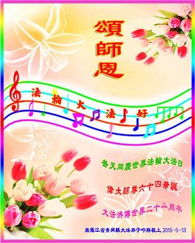 黑龍江省牡丹江一學法小組大法弟子恭祝慈悲偉大的師尊生日快樂!慶祝世界法輪大法日!