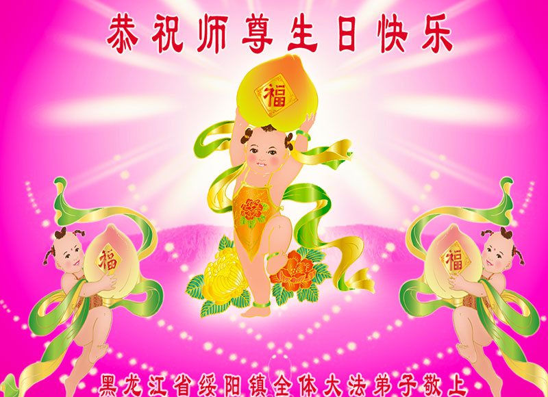 黑龍江省綏陽鎮全體大法弟子恭祝師尊生日快樂!同慶同祝5.13世界法輪大法日!