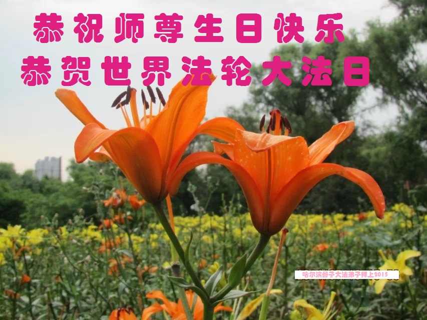 黑龍江省哈爾濱市平房區大法弟子恭祝師尊生日快樂!恭賀法輪大法洪傳二十三週年!