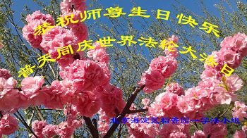 北京海澱區稻香園一學法小組大法弟子恭祝師尊生日快樂!普天同慶世界法輪大法日!