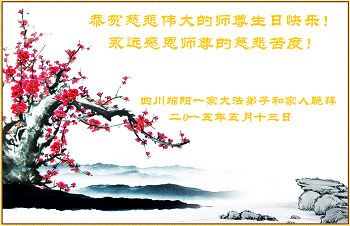 四川省綿陽大法弟子恭祝師尊生日快樂!同賀世界法輪大法日!