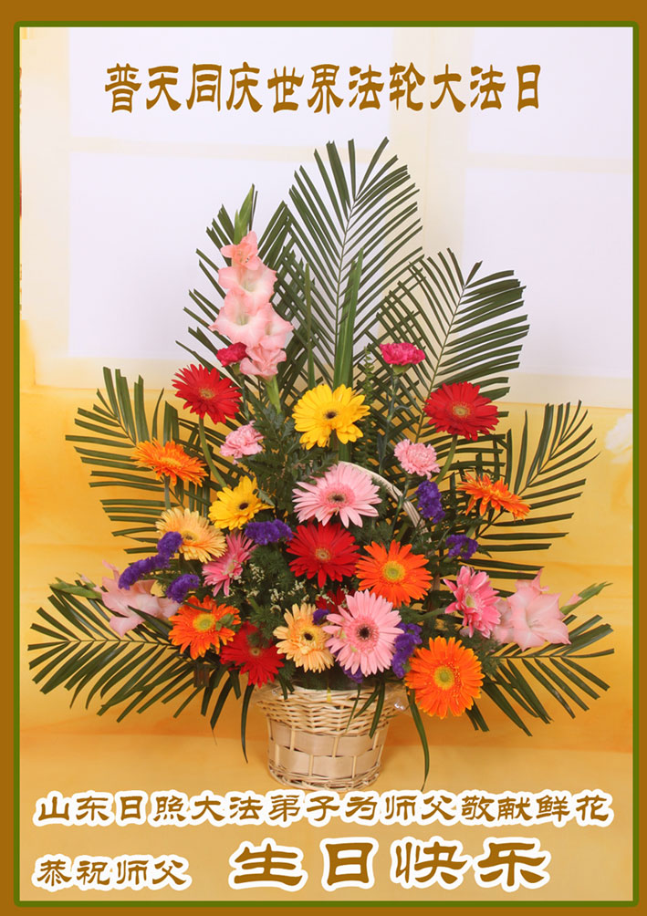 山東日照大法弟子為師父敬獻鮮花,恭祝師父生日快樂!普天同慶世界法輪大法日!