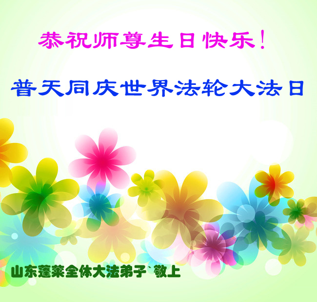 山東煙台大法弟子恭賀世界法輪大法日並祝慈悲偉大的師父生日快樂!