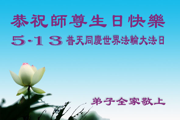 弟子全家恭祝師尊生日快樂!普天同慶世界法輪大法日!