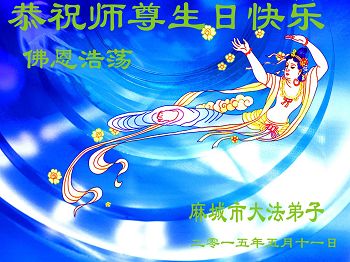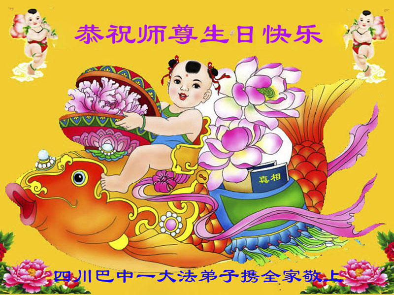 我是從一九九八年四月份開始修煉,自修煉以來一身病不治而飛了,由家庭的不和睦,變為和睦,而且大孫四次落難,二兒子車禍都安然無恙。在此我全家感恩師父救度之恩,並祝師父生日快樂。
