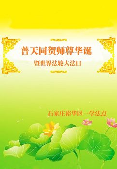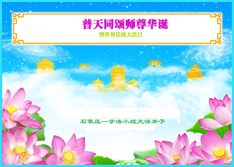 河北省石家莊一學法小組大法弟子普天同頌師尊華誕暨世界法輪大法日!