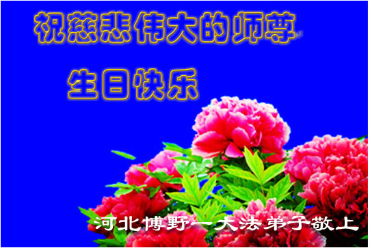 河北博野一大法弟子拜賀師尊,祝師尊生日快樂!