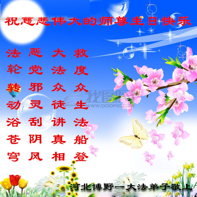 大陸夫妻大法弟子恭祝師父生日愉快!