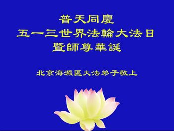 北京海澱區大法弟子普天同慶五一三世界法輪大法日暨師尊華誕!