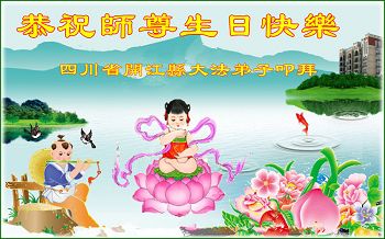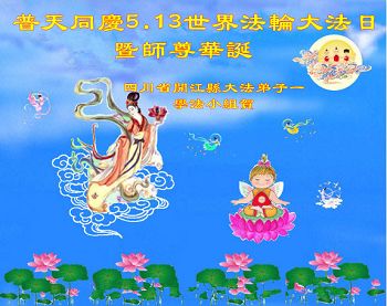 在全世界大法弟子慶祝「世界法輪大法日」之際,我們四川眉山的全體大法弟子同全世界大法弟子一樣,以各種方慶祝自己的節日及恭祝慈悲偉大的師尊生日快樂!感謝慈悲偉大的師尊慈悲救度之恩!在正法最後之際,一定牢記師尊教誨,努力學好法,修好自己,努力做到修煉如初,以大法的標準不斷的嚴格要求自己,努力做好三件事,救度一切可救的生命,完成助師正法的宏誓大願,做一名合格的正法時期大法弟子。