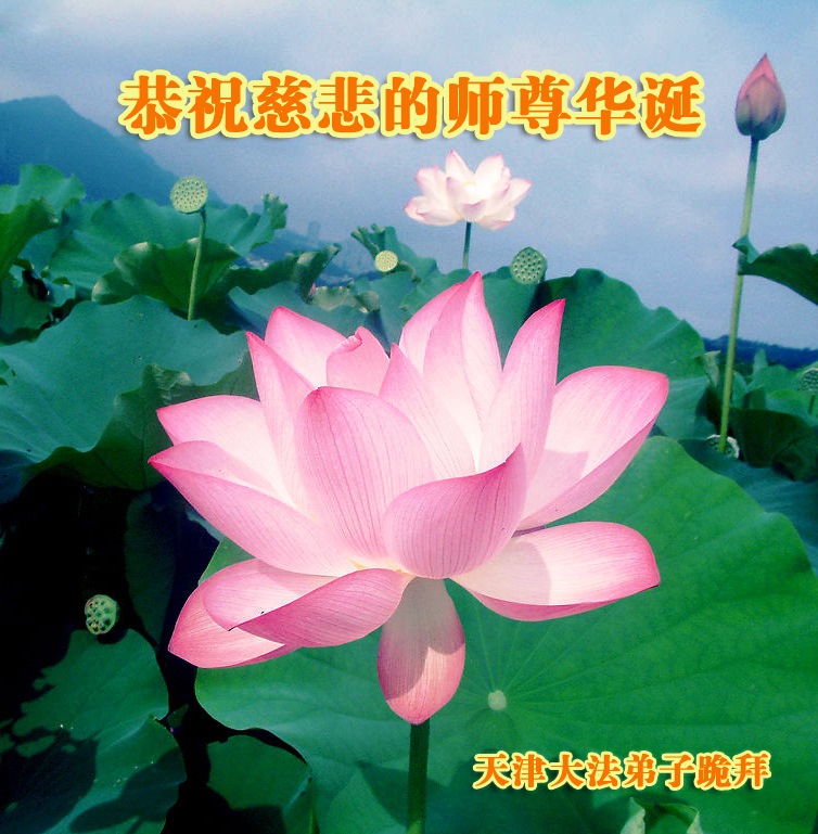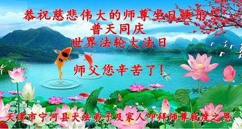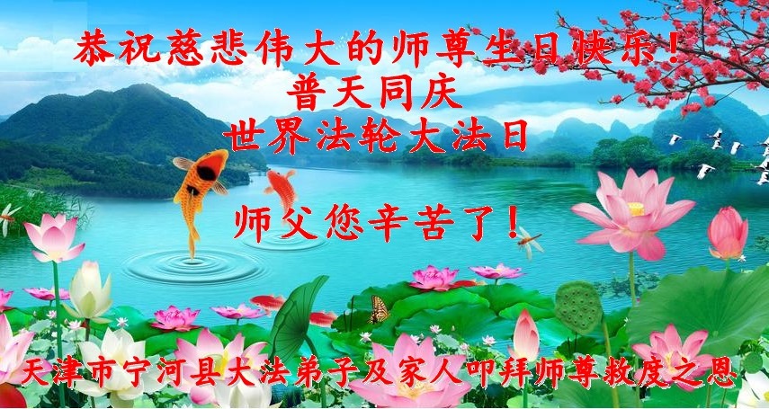天津大法弟子恭賀法輪大法洪傳二十三週年!恭祝慈悲偉大的師尊生日快樂!普天同慶世界法輪大法日!