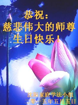 遼寧瀋陽一學法小組大法弟子慶賀5.13世界法輪大法日!恭祝師尊華誕暨法輪大法洪傳世界二十三週年!