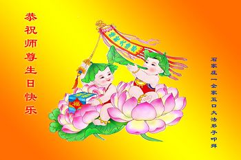 慈悲偉大的師尊:您好,在世界法輪大法日來臨之際,恭祝師尊生日快樂!