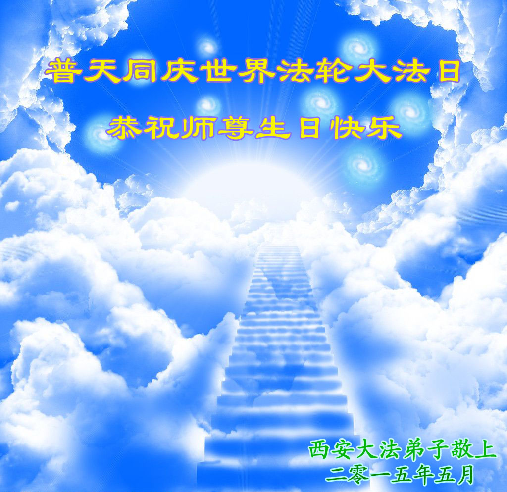 陝西西安大法弟子恭賀師尊華誕!慶祝法輪大法洪傳二十三週年!