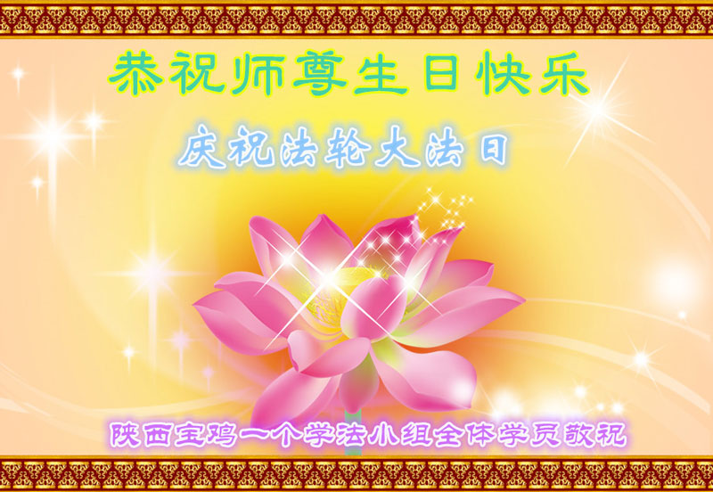 陜西陝西省寶雞一三人學法小組大法弟子敬賀世界法輪大法日!暨恭祝師父華誕快樂 !