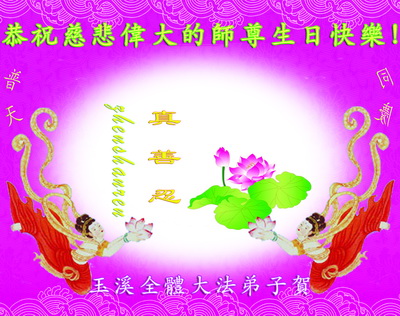 雲南玉溪地區全體大法弟子恭祝慈悲偉大的師尊生日快樂!普天同慶世界法輪大法日暨大法洪傳二十三週年!