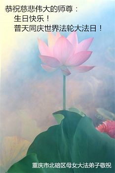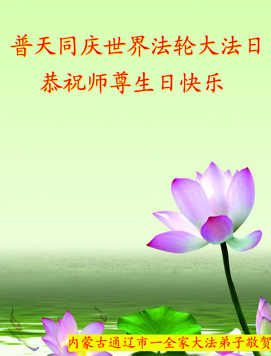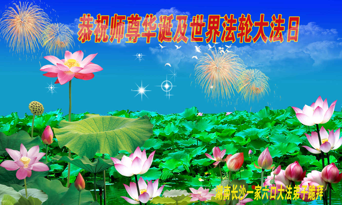 在普天同慶的日子裏,我們全家大法弟子恭祝師尊生日快樂!暨世界法輪大法日!我們要走好今後的助師正法路,回報師尊的慈悲苦度!