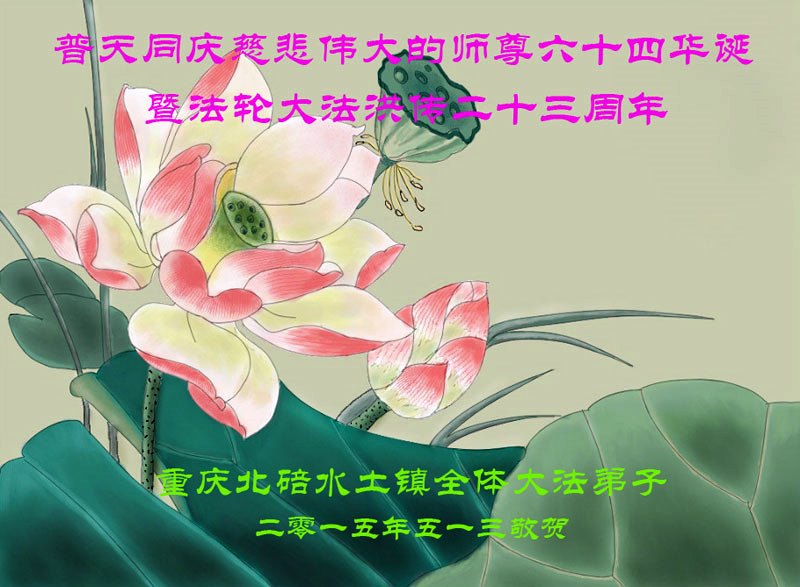 重慶北碚水土鎮全體大法弟子恭祝慈悲偉大的師尊華誕!慶祝法輪大法洪傳二十三週年!