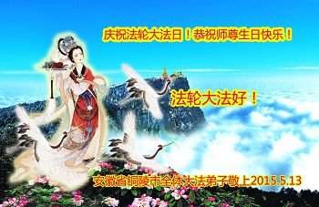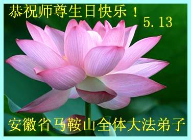 全體安徽省馬鞍市大法弟子普天同慶法輪大法洪傳二十三週年暨世界法輪大法日!恭祝師尊生日快樂!