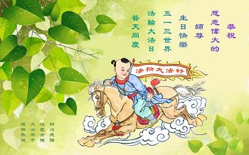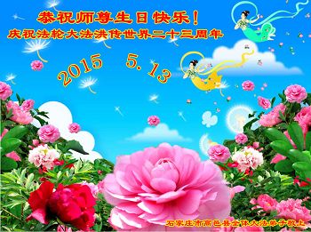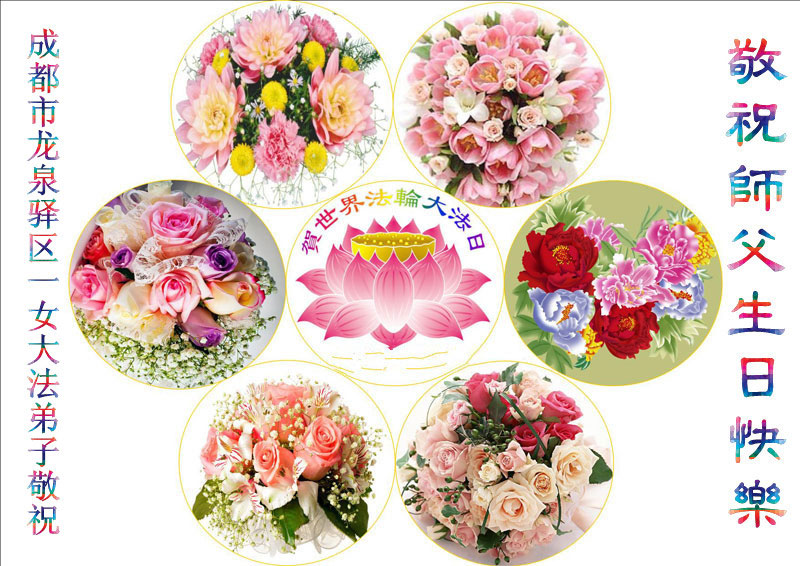成都市龍泉驛區一女大法弟子敬祝恩師生日快樂!慶祝大法洪傳二十三週年暨世界法輪大法日!
