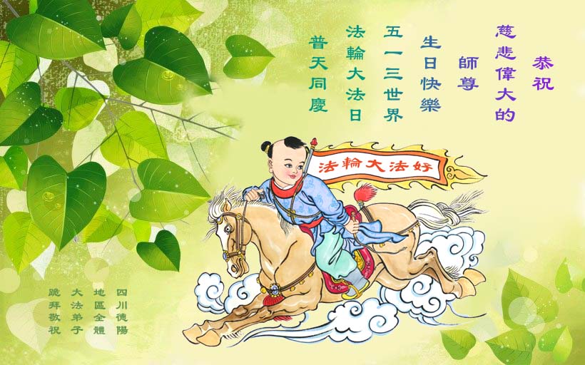 四川德陽地區全體大法弟子和小弟子恭祝師尊生日快樂!恭賀五一三世界法輪大法日!