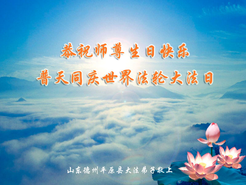 山東德州平原縣大法弟子恭祝師尊生日快樂!普天同慶世界法輪大法日!