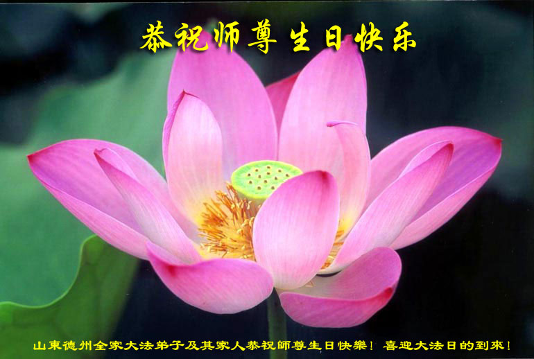 山東德州全家大法弟子及其家人恭祝師尊生日快樂!喜迎大法日的到來!