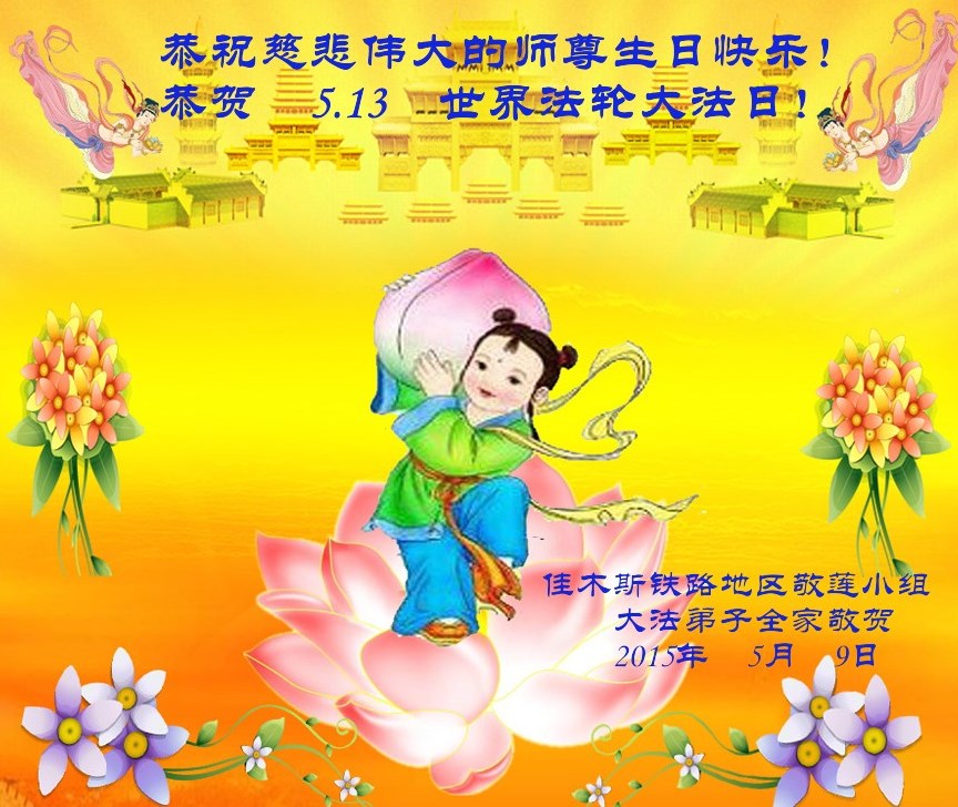 佳木斯鐵路地區敬蓮小組大法弟子全家恭祝慈悲偉大的師尊生日快樂!賀五一三法輪大法日!