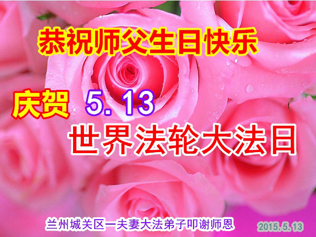 蘭州城關區一夫妻大法弟子恭祝師父生日快樂!慶賀5.13世界法輪大法日!