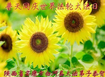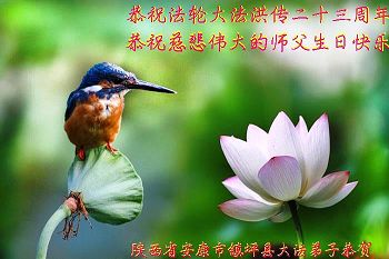 陝西省安康市鎮坪縣大法弟子恭祝慈悲偉大的師尊生日快樂!恭祝法輪大法日洪傳二十三週年!