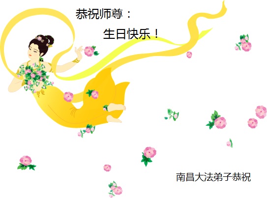 南昌大法弟子恭祝慈悲偉大的師尊生日快樂!慶祝法輪大法洪傳二十三週年!