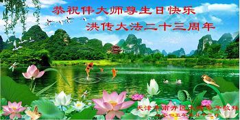 天津市南開區大法弟子恭祝偉大的師尊生日快樂!慶祝法輪大法洪傳二十三週年!