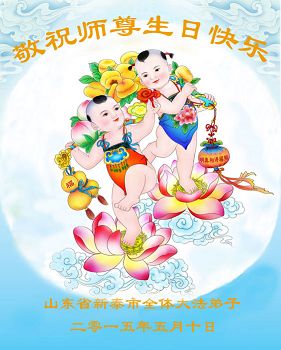 山東省泰安市新泰全體大法弟子恭祝師尊生日快樂!普天同慶法輪大法洪傳二十三週年!