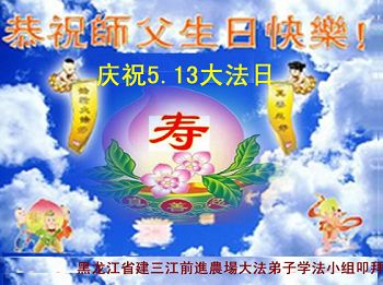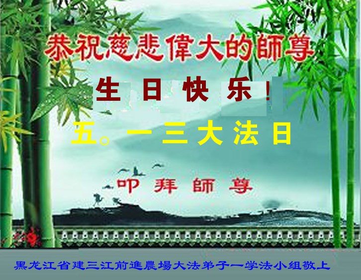 黑龍江省建三江前進農場全體大法弟子恭祝師尊生日快樂!慶賀5.13世界法輪大法日!