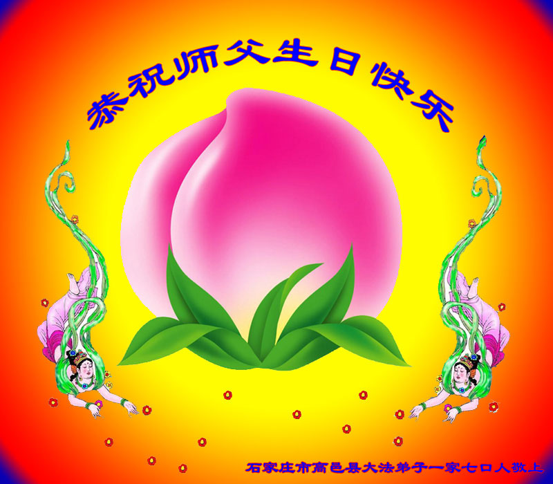 石家莊市高邑縣大法弟子一家七口人恭祝師父生日快樂!