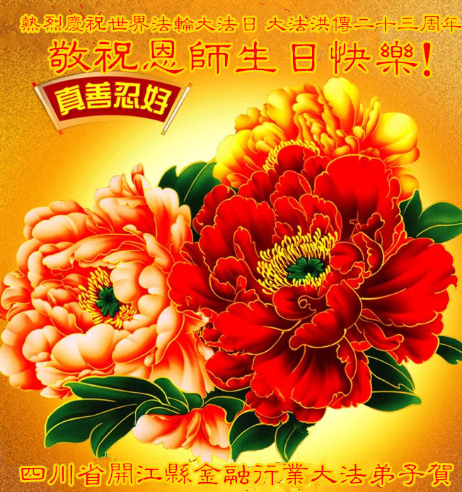 四川省開江縣金融行業大法弟子熱烈慶祝世界法輪大法日!大法洪傳二十三週年!敬祝恩師生日快樂!
