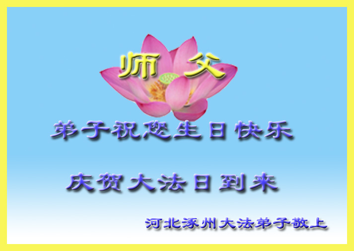 河北涿州大法弟子祝師尊生日快樂!慶賀大法日到來!