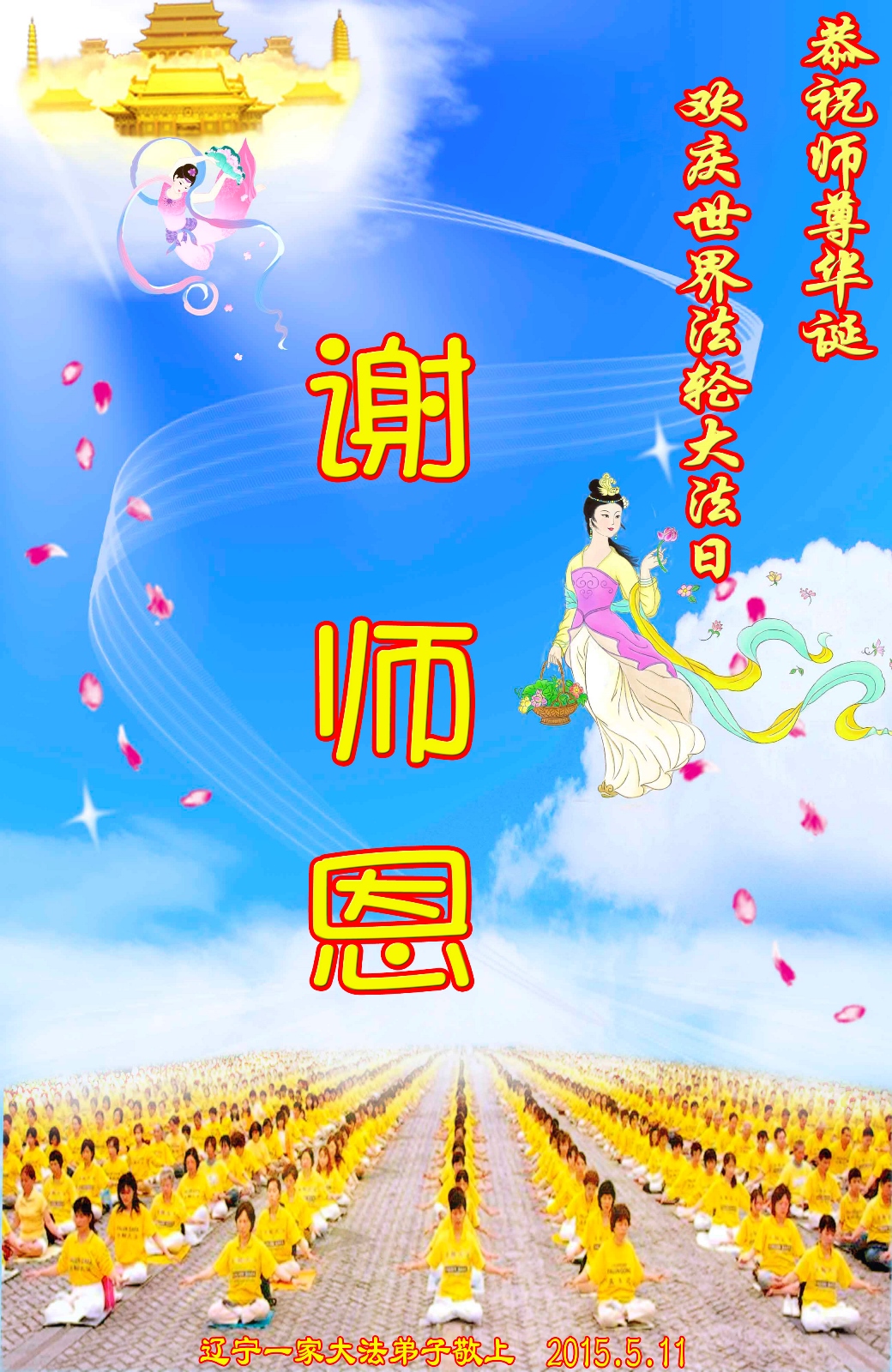 賀吉辰,傳真相,夜無眠。牢記三事,法徒精進寸心丹。兌現助師誓約,善解生生恩怨,穹宇眾生歡。但願世人醒,劫後返家園。