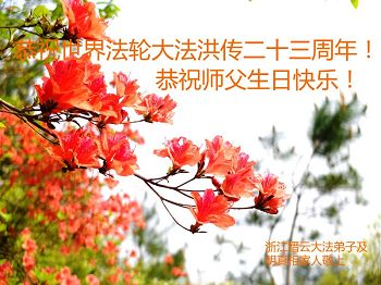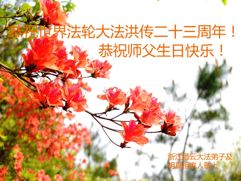 浙江縉雲大法弟子及明真相家人恭祝世界法輪大法洪傳二十三週年!恭祝師父生日快樂!